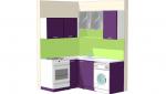 Ъглова кухня по поръчка от пдч в лилаво и зелено